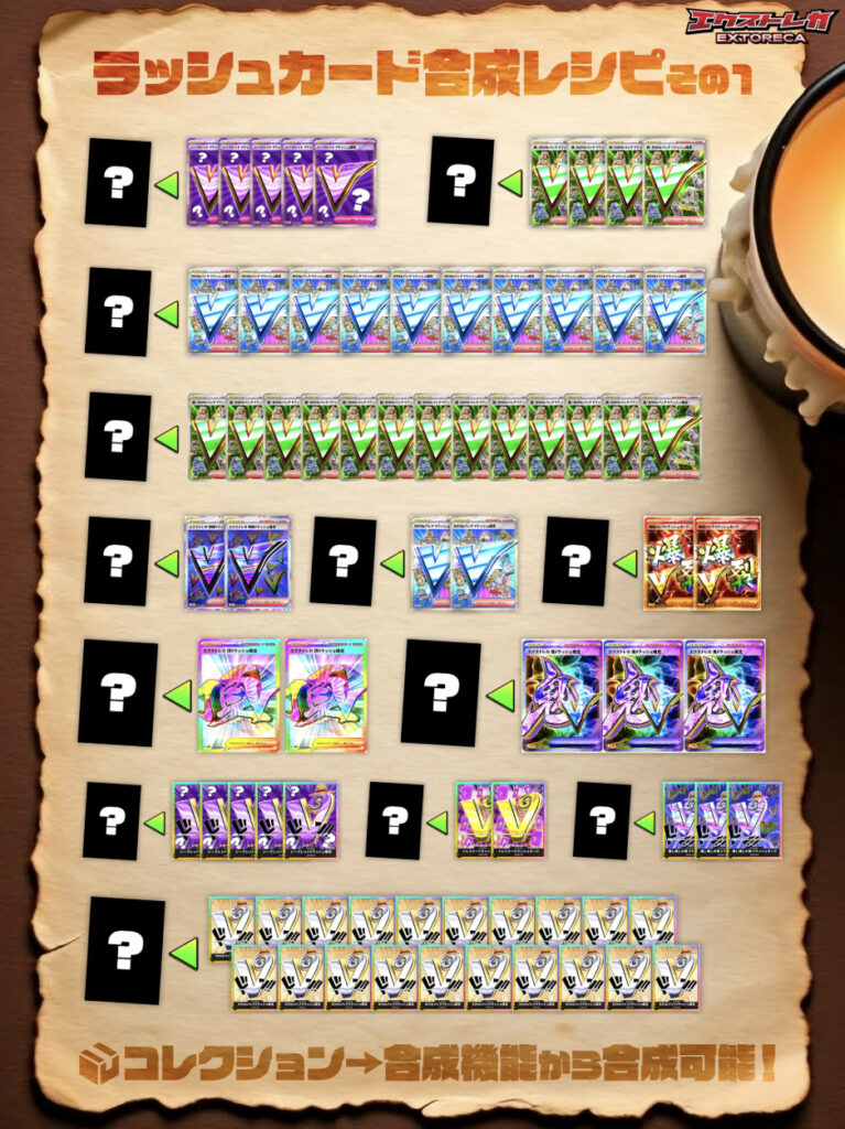 - 「Vラッシュの合成レシピを参考に上位カードを作りたい!」